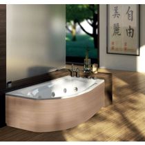 First hydromasážná vaňa s najvýšším systémom hydromasáže - Hygien Plus Systém. Vaňa novej generácie - polobarierová vaňa, výška vane od zeme 48 cm. Rozmer vane 160x90x70 cm - objem vody k prepadu 190L. Súčasťou vane je dotyková klavesnica, hydromasažné trysky po obvode vane, senzor vyšky hladiny, ploché uzatvarateľné trysky, managment hygieny, Ideal Waste sifon, oporná konštrukcia, čelný panel z dreveného masívu v prevedení svetlý dub, 4-otvorová vaňová armatúra.