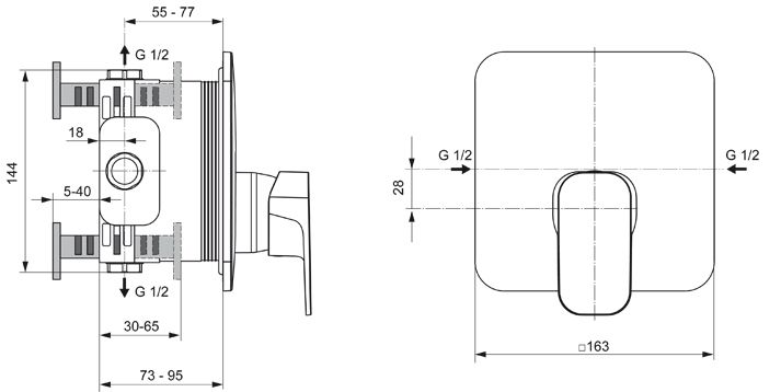 Tonic II sprchová podomietková batéria Diel 2. Obmedzovač teplej vody. Tesniací systém Dich-Fix. Kovová rozeta.