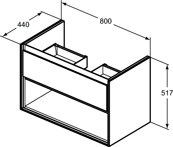 Connect Air skrinka pod nábytkové umývadlo vrátane upevňovacej sady. 1 zásuvka s Soft-close zatváracím mechanizmom + 1 otvorená polica. Povrch: viacvrstevný lesklý alebo matný lak, v prípade dekóru dreva melaminová vrstva.