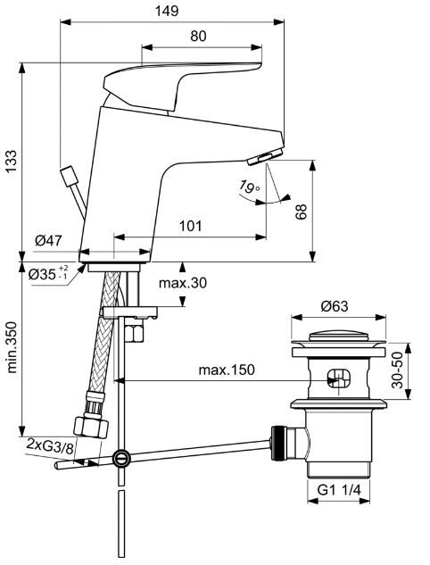 Ceraflex umývadlová batéria s odpadovou garnitúrou a flexibilnými hadicami, B1708 Čítať viac