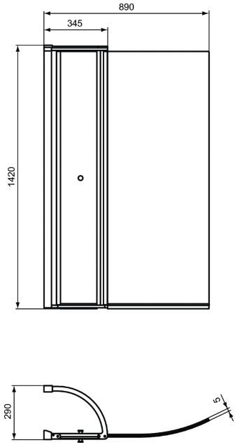 Sprchová vaňová zástena sklenená s dvierkami. Montáž obojstranná.