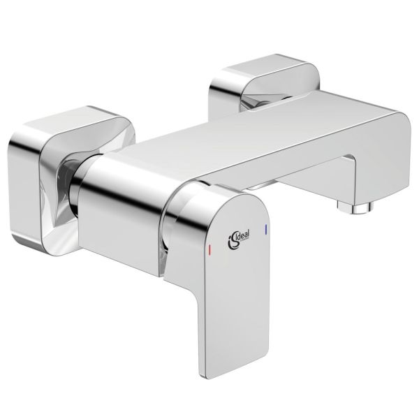 Edge sprchová batéria nástenná DN 15. So zariadením na zamedzenie spätného toku. Skryté S-prípojky s nízkou hlučnosťou (nastaviteľné od 135-165 mm). Kovová ovládacia páka.  CLICK-kartuša Ø 38 mm s keramickými diskami. Pivot kartuše z nerezovej ocele. Rozsah otáčania páky 100°. Integrovaný zásobnik maziva (vhodné pre potravinárske použitie). Životnosť testovaná podľa EN 817. Ochrana proti hluku DIN 4109, trieda 1.