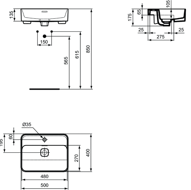 STRADA II Umývadlo polozápustné 50x40 cm, T2993
