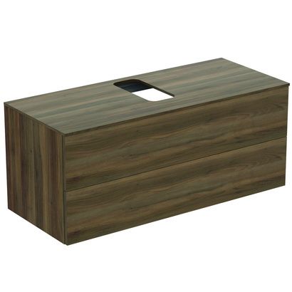 Adapto skrinka pod umývadlo s vrchnou doskou s výrezom u prostred pre kombináviu  s umývadlalmi Strada II, Cennect Cube, Connect Arc, Connect Sphere. 2 zásuvky s Puch-Pull otváracím mechanizmom. Vrátane upevňovacieho setu.