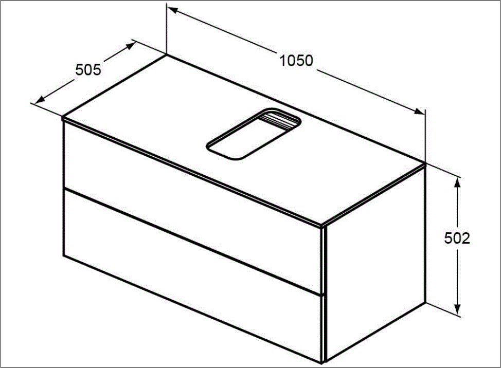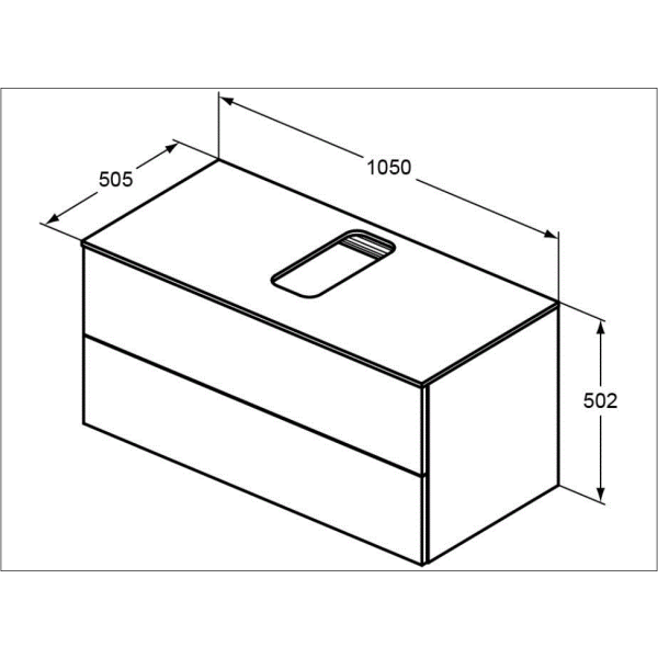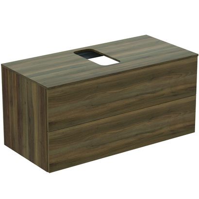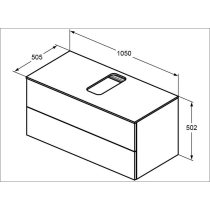 Adapto skrinka pod umývadlo s vrchnou doskou s výrezom u prostred pre kombináviu  s umývadlalmi Strada II, Cennect Cube, Connect Arc, Connect Sphere. 2 zásuvky s Puch-Pull otváracím mechanizmom. Vrátane upevňovacieho setu.