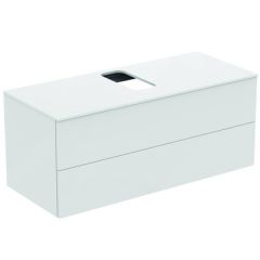 Adapto skrinka pod umývadlo s vrchnou doskou s výrezom u prostred pre kombináviu  s umývadlalmi Strada II, Cennect Cube, Connect Arc, Connect Sphere. 2 zásuvky s Puch-Pull otváracím mechanizmom. Vrátane upevňovacieho setu.