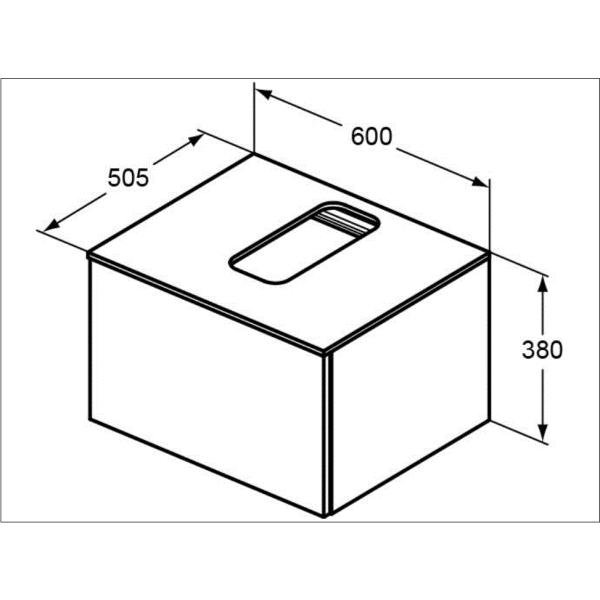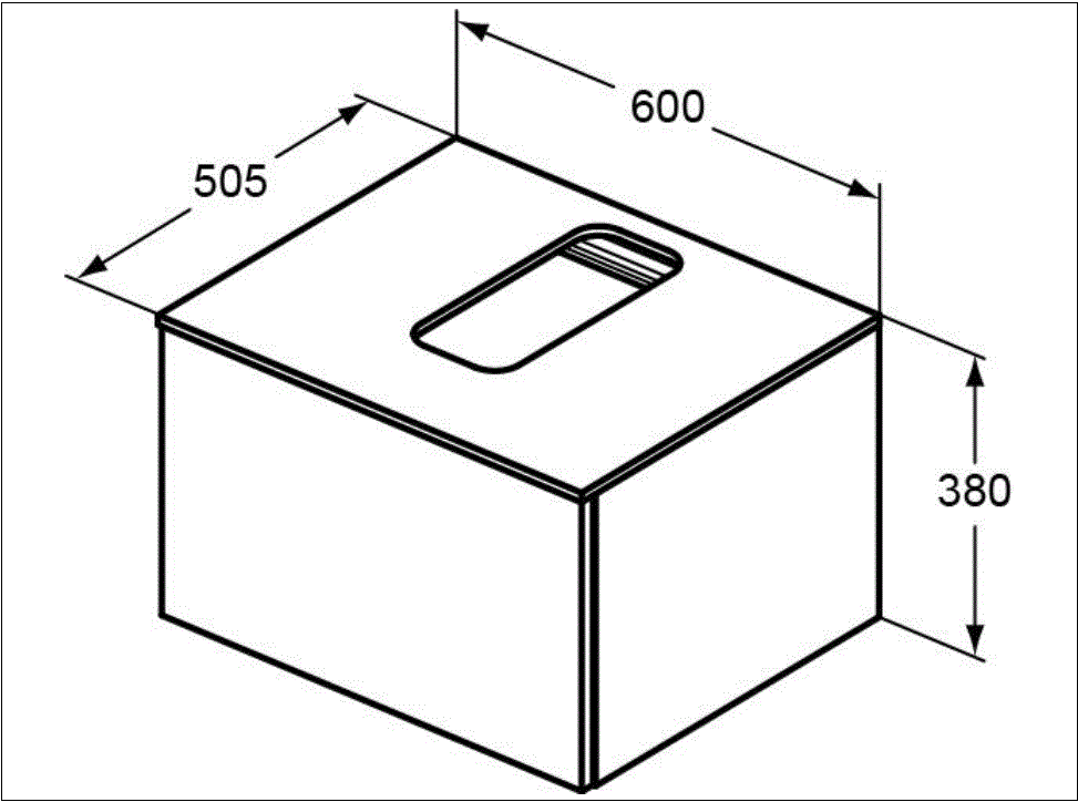Adapto skrinka pod umývadlo s vrchnou doskou s výrezom u prostred pre kombináviu  s umývadlalmi Strada II. 1 zásuvky s Puch-Pull otváracím mechanizmom. Vrátane upevňovacieho setu.