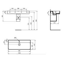 Strada II umývadlo 100x43 cm s brúsenou spodnou hranou. Umývadlo s 1 otvorom pre batériu a s brúsenou spodnou hranou. Umývadlo je dodávané vrátane  keramického krytu odpadu. Inštalácia na stenu. Upevnenie pomocou 4 skrutiek M10x140 mm. Kombinácia s polostĺpom, s nábytkovou konzolou alebo s designovým sifónom.