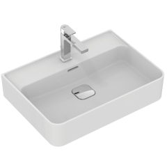 Strada II umývadlo 60x43 cm s 1 otvorom pre batériu a  s brúsenou spodnou hranou. Umývadlo je dodávané vrátane  keramického krytu odpadu. Inštalácia na stenu. Upevnenie pomocou 4 skrutiek M10x140 mm. Kombinácia s polostĺpom, s nábytkovou konzolou alebo s designovým sifónom.