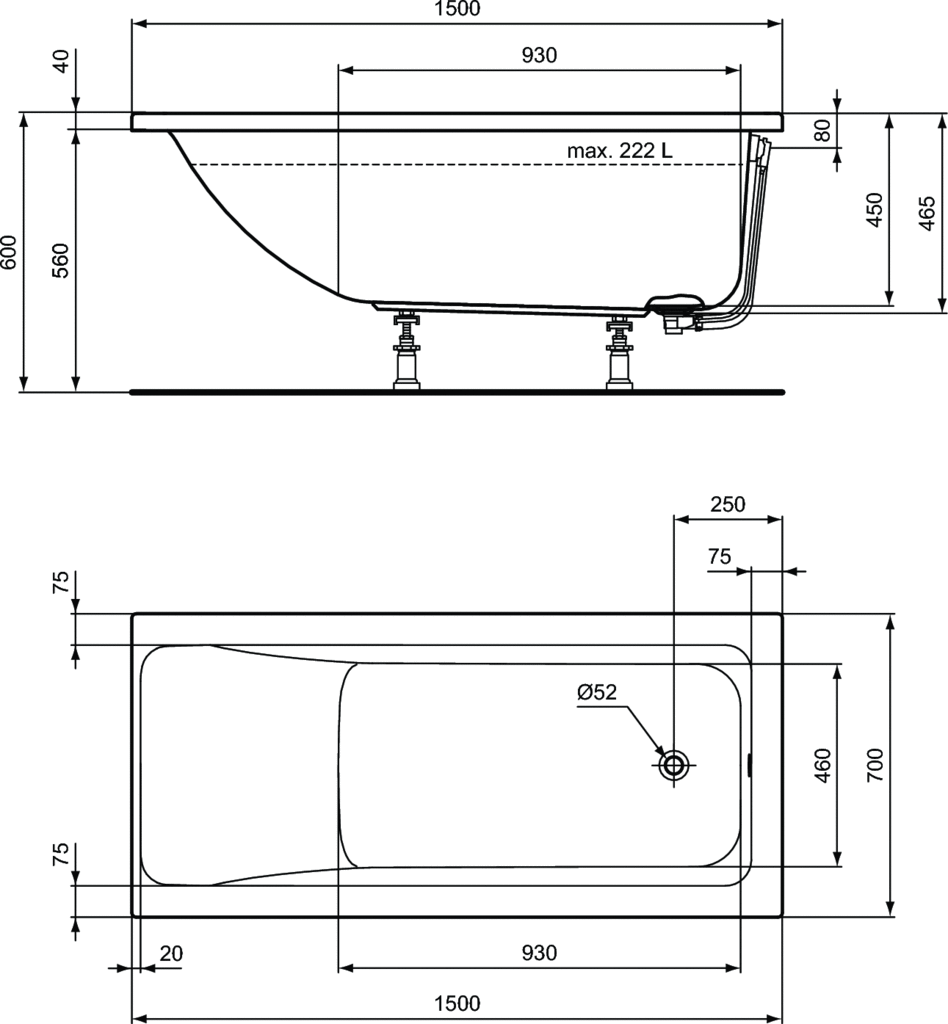 CONNECT AIR Vaňa akrylátová 150x70 cm, T361301