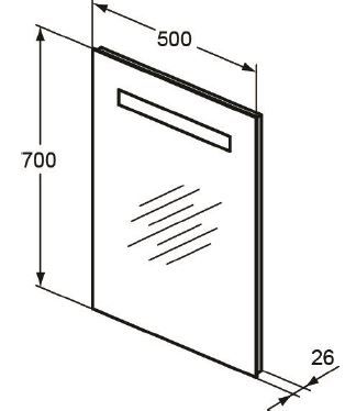 Mirror & Light zrkadlo s podsvietením 50x70x2,6. Zrkadlo s LED osvetlením a funkciou proti zahmlievaniu s rámom z termoplastu (farba hliník). IP 44. LED. Farba svetla 4000 kelvinov. 230V. Trieda ochrany II. Energetická trieda A. Vrátane upevnenia. Reversebilné. LED osvetlenie nie je možné vymeniť. Osvetlenie zrkadla  a funkcia proti zahmlievaniu môžete ovládať iba externým vypínačom.