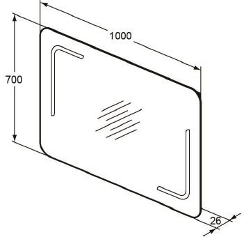 Mirror & Light zrkadlo s LED osvetlením a ambietným podsvietením 100x70x2,6. Zrkadlo s osvetlením a  LED ambietným  podsvietením (spodná hrana) a funkciou proti zahmlievaniu s rámom z termoplastu (farba hliník). IP 44. LED. Farba svetla 4000 kelvinov. 230V. Trieda ochrany II. Energetická trieda A. Vrátane upevnenia. Reversebilné. LED osvetlenie nie je možné vymeniť. Osvetlenie zrkadla  a funkcia proti zahmlievaniu môžete ovládať iba externým vypínačom.