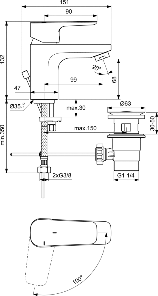 Ceraplan III Slim umývadlová batéria Bluestart s odpadovou garnitúrou a flexibilnými hadicami. CeraPlan III umývadlová batéria DN 15. Pevný vývod, perlátor. S odpadovou garnitúrou G1 1/4. Vývod 99 mm. Výška vývodu 68 mm. S flexibilnými hadicami G3/8. Kovová ovládacia páka. Montáž zospodu - upevnenie EASY FIX s centrovacím a tiesniacim krúžkom. CLICK-kartuša Ø 38 mm s keramickými diskami. Pivot kartuše z nerezovej ocele. Integrovaný obmedzovač teplej vody + ECO funkcia. Životnosť testovaná podľa EN 817. Ochrana proti hluku DIN 4109, trieda 1. Obmedzovač prietoku na max. 5 l/min pri pracovnom tlaku 0,3 MPa. Certifikát WELL A****.