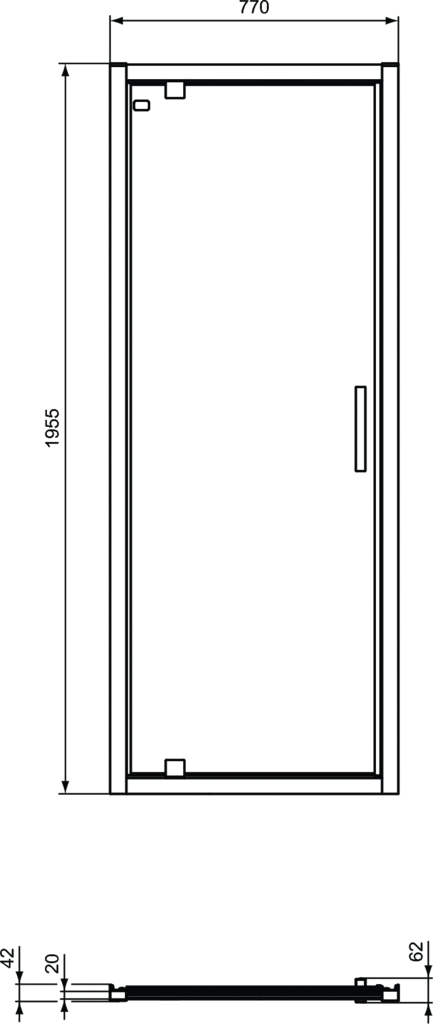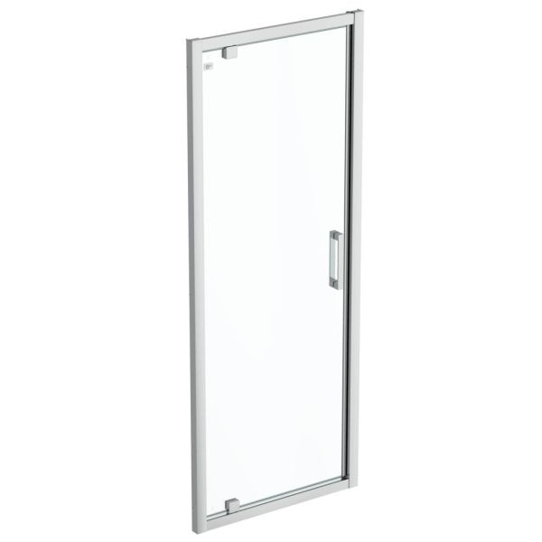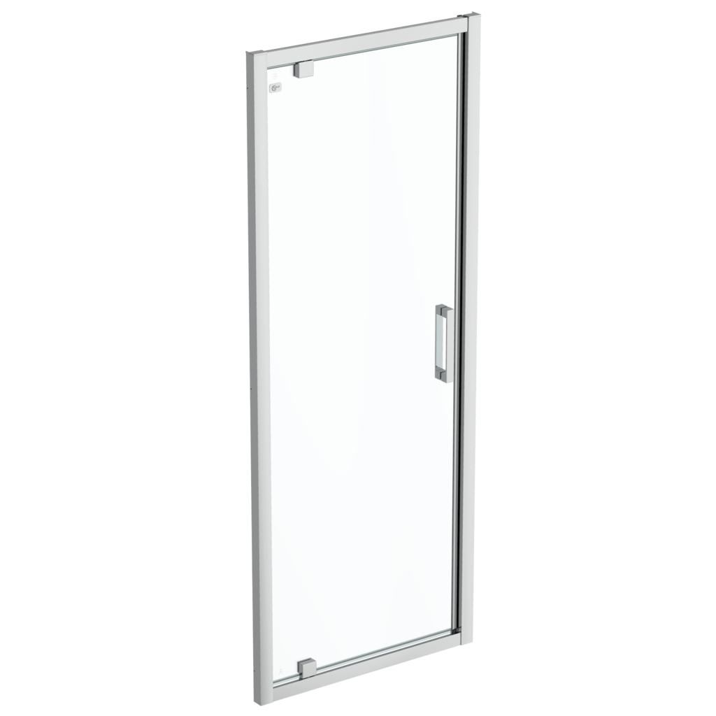 Connect 2 pivotové dvere - do niky alebo pre kombináciu s pevnou stenou pre vytvorenie sprchovacieho kúta. Výška 195 cm. Prevedenie výplne bezpečnostné sklo číre transparentné. Sklo s úpravou Ideal Clean (zamedzuje usadzovaniu vodného kameňa a uľahčuje čistenie). Hliníkové profily Silver Bright (lesklý chróm). Masívna chrómová rukoväť 225 mm.  Montážna nastaviteľnosť 25 mm na profil =  50 mm od 770mm - 820mm. Možnosť kombinovať so všetkými sprchovými vaničkami, alebo inštalovať priamo na dlažbu. Dvere sú reversebilné - je možné ich inštalovať ako pravé i ľavé.
