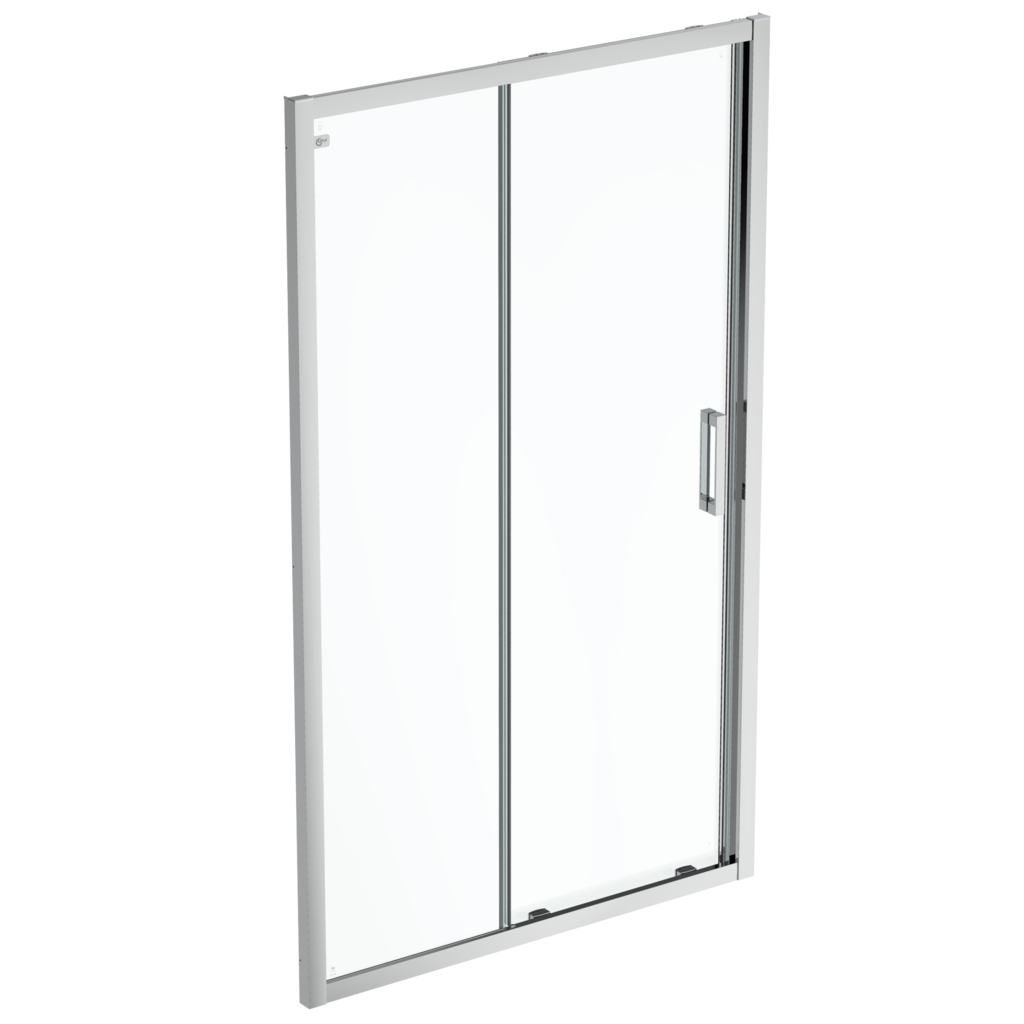 Connect 2 posuvné dvere ( jedné posuvné dvere, jeden fixný panel) - do niky, alebo pre kombináciu s pevnou stenou pre vytvorenie sprchovacieho kúta. Výška 195 cm. Prevedenie výplne bezpečnostné sklo číre transparentné. Sklo s úpravou Ideal Clean (zamedzuje usadzovaniu vodného kameňa a uľahčuje čistenie). Hliníkové profily Silver Bright (lesklý chróm). Masívna chrómová rukoväť 225 mm. Hladké pojazdové kolieska. Systém Clik&Clean (uvoľnenie spodnej častí dverí pre uľahčenie čistenia). Montážna nastaviteľnosť 25 mm na profil = 50 mm od 1770mm - 1220mm. Možnosť kombinovať so všetkými sprchovými vaničkami, alebo inštalovať priamo na dlažbu. Dvere sú reversebilné - je možné ich inštalovať ako pravé i ľavé.