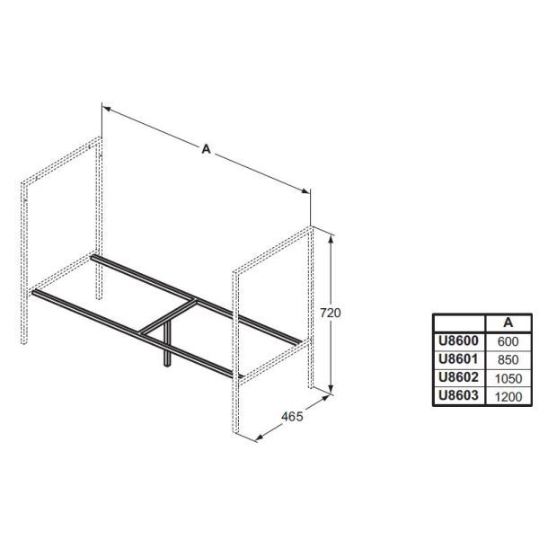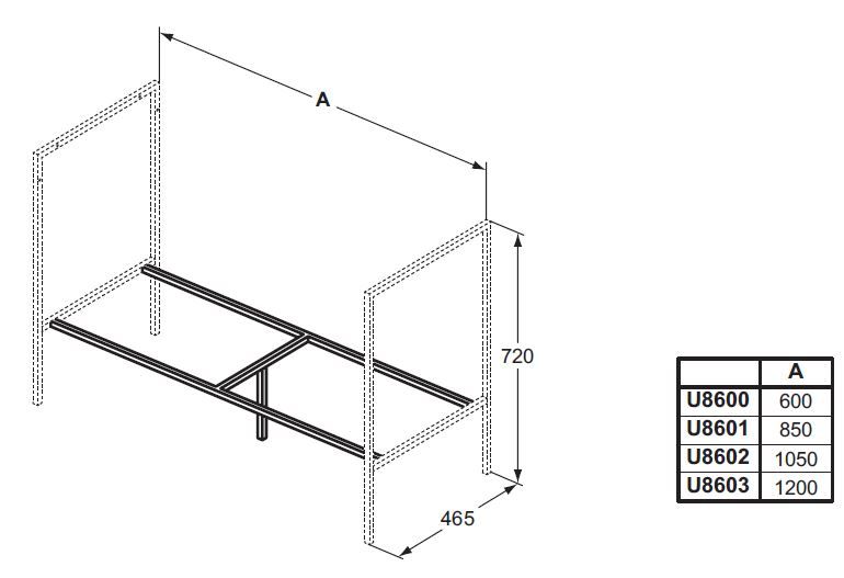 Adapto podporný rám 85 cm. farba čierna. Podperný rám pod umývadlo. Materiál Hliník. Pre kombináciu s podpornými nohami, nábytkovou policou, vrchnou doskou a nástennou skrinkou.