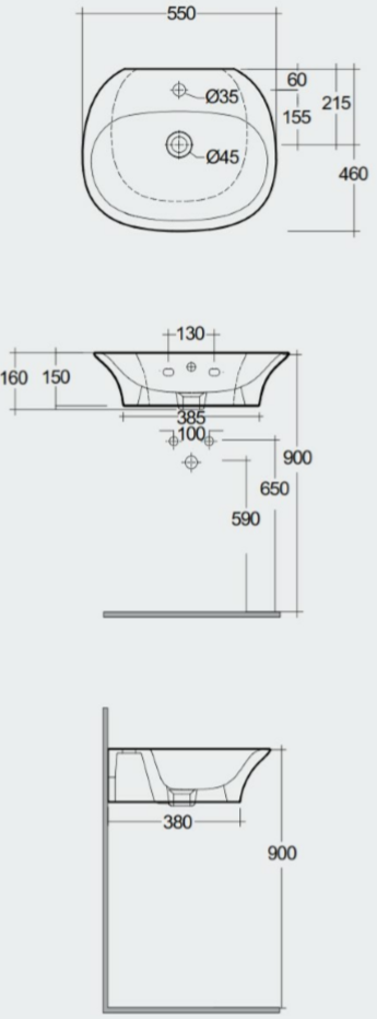 Rak Sensation umývadlo 55x46 cm. S otvorom pre batériu a prepadovým otvorom. Z keramického črepu prevedenie bielá lesklá. Možnosť inštalácie na dosku.