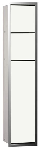 Asis 150 vstavaný WC modul 80 cm, 3-dvierkový, hliník/biele sklo. Obojstranné prevedenie. Voliteľná farba rámčeka hliník / chróm. Voliteľná farba sklenených dvierok - biele / čierné sklo. Materiál modulu hliník eloxovaný. 2 x dvierka pre WC papier. 1x dvierka pre WC kefu s nádobou. Vrátane podomietkového modulu.