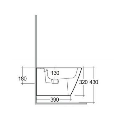 Rak Feeling bidet závesný so skrytým upevnením. Otvor pre batériu bidetovú.