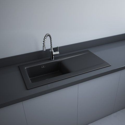 Rak Dream, Drez keramický, odkladacia plocha vpravo, priemer odpadu 90mm, mat black.