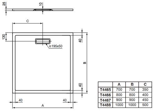 UltraFlat New ultra tenká štvorcová sprchová vanička zo sanitárneho akrylátu. Výška vaničky 25 mm, hrúbka akrylátu 3,2 mm. Vhodné pre inštaláciu na pripravenú podlahu alebo na zapustenie do podlahy.