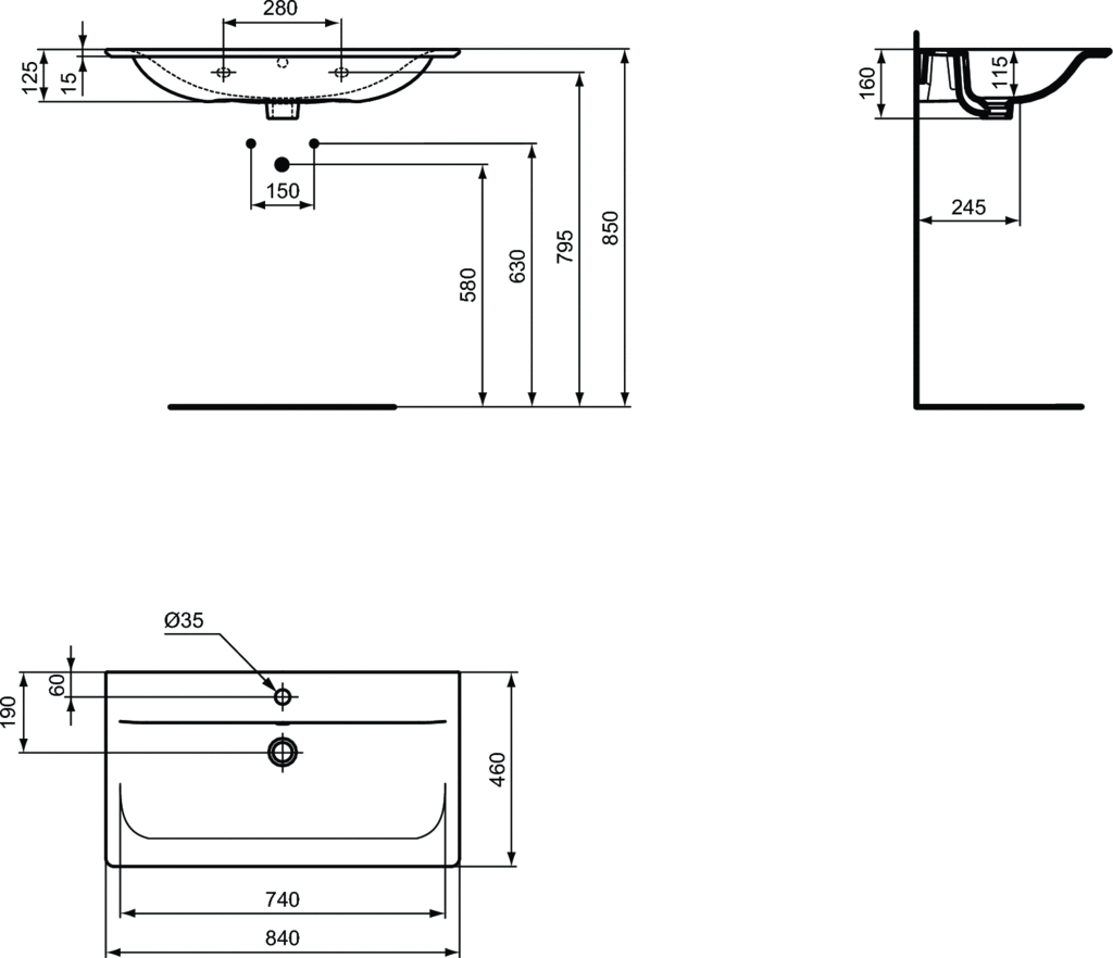 CONNECT AIR Umývadlo 84x46 cm, farba hodvábna čierna, E0279V3