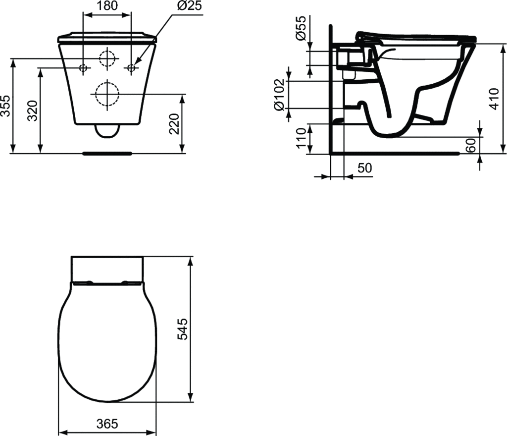 CONNECT AIR Rimless+ WC závesné 36x55 cm, farba hodvábna čierna, E2288V3