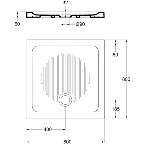 Connect sprchová vanička keramická štvorcová 80x80 cm. Glazované z 3 strán - nie je glazovaná na stene u odpadu.