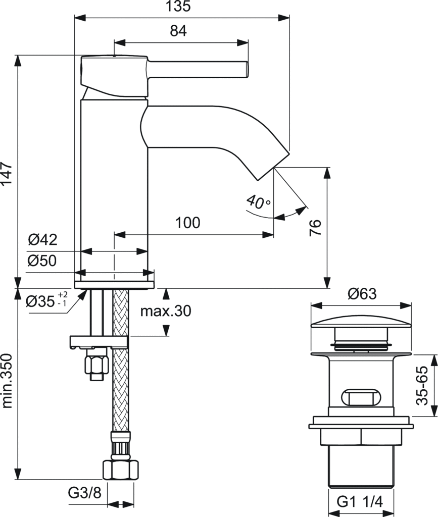CERALINE Umývadlová batéria s Click-clack odpadovou garnitúrou a flexibilnými hadicami, BC822XG