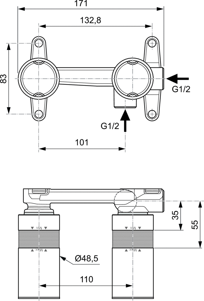 GUSTO Drezová nástenná dvojotvorová batéria, BD426A5