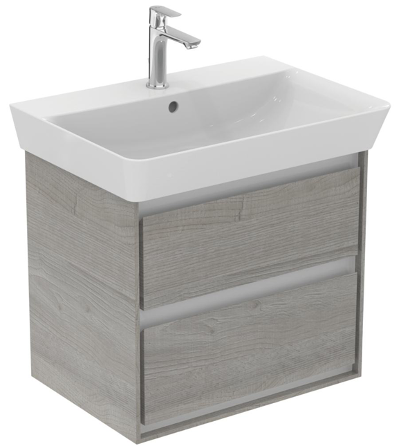 Connect Air skrinka pod umývadlo 58 cm vrátane upevnenia. 2 zásuvky so Soft-close zatváracím mechanizmom. Pre kombináciu s umývadlom Connect Air CUBE - 65 cm.