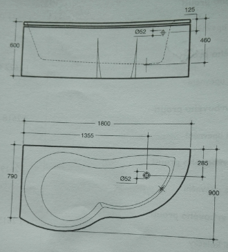 Dahlia vaňa anatomicky tvarovaná 180x90 cm s čelný panelom a sifónom, J281501, Ľavá