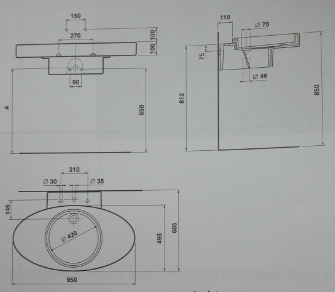 Independent umývadlo 95x60 cm, s polostĺpom T073401+T403401