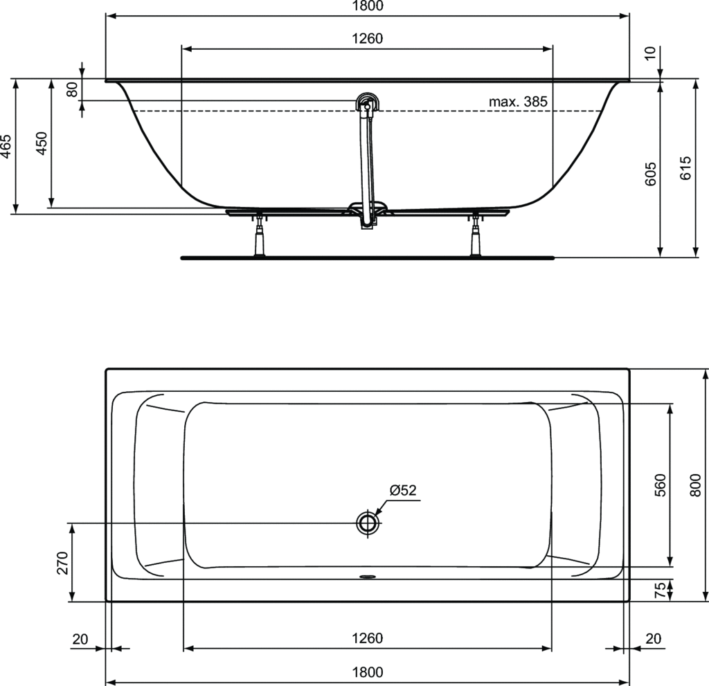 CONNECT AIR Vaňa DUO akrylátová s tenkým okrajom 180x80 cm, R029601