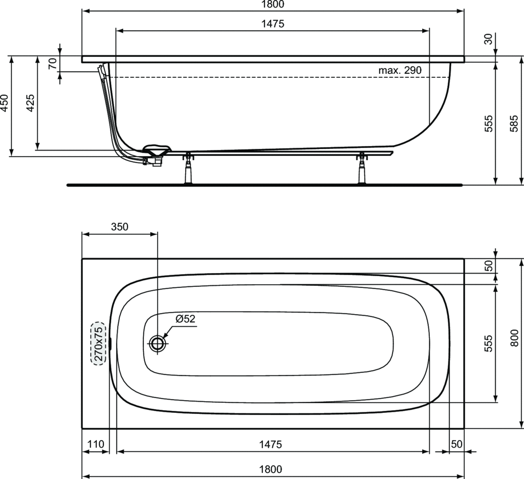 I.LIFW vaňa akrylátová 180x80 cm. Anatomický tvarovaná vaňa zo sanitárného akrylátu. Vonkajší plášť vystužený skleneným vláknom. Zpevnený rám a dno vane. Typ montáže k zabudovaniu. Odpad i prepad Ø52mm. Montážny set a nohy k vani nie sú súčasťou balenia - nutné objednať.