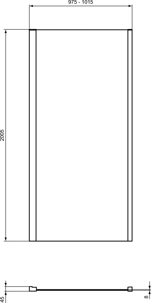 I.Life pevná bočná stena 100 cm pre sprchové kúty. Výška 200 cm. Prevedenie výplne bezpečnostné 8 mm sklo číre transparentné. Sklo s úpravou Ideal Clean (zamedzuje usadzovaniu vodného kameňa a uľahčuje čistenie). Hlinikové profily Silver Bright (lesklý chróm). Montážna nastaviteľnosť 20 mm na profil = 40 mm od 975 mm - 1015 mm. Možnosť kombinovať so všetkými sprchovými vaničkami, alebo inštalovať priamo na dlažbu.