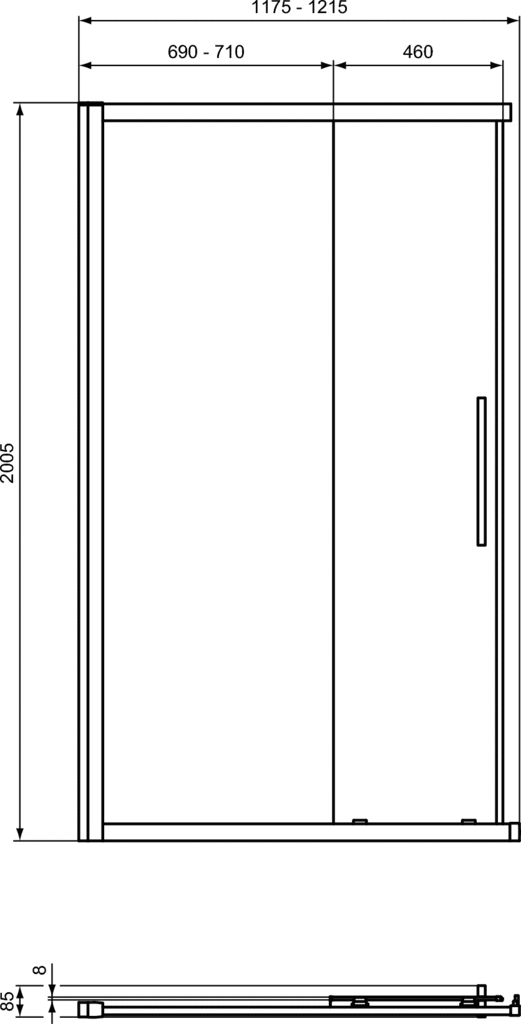 I.LIFE štvorcový/obdĺžnikový sprchovací kút s posuvnými dverami a rohovým vstupom. Výška 200 cm. Prevedenie výplne bezpečnostné sklo 8 mm číre transparentné. Sklo s úpravou Ideal Clean (zamedzuje usadzovaniu vodného kameňa a uľahčuje čistenie). Hliníkové profily Silver Bright (lesklý chróm). Masívna chrómová rukoväť 350 mm. Hladké pojazdové kolieska. Systém Clik&Clean (uvoľnenie spodnej častí dverí pre uľahčenie čistenia). Montážna nastaviteľnosť 20 mm na profil = 40 mm od 1175mm - 1215 mm. Možnosť kombinovať so všetkými sprchovými vaničkami, alebo inštalovať priamo na dlažbu. Dvere sú reversebilné - je možné ich inštalovať ako pravé i ľavé. UPOZORNENIE: objednávacie číslo zahrňuje jednú samostatnú stranu/ dvere sprchovacieho kúta. Pre zostavenie kúta je nutné objednať 2 ks. Kút je možné kombinovať len s pevnou stenou I.Life, ale iba ako tretia strana kúta.