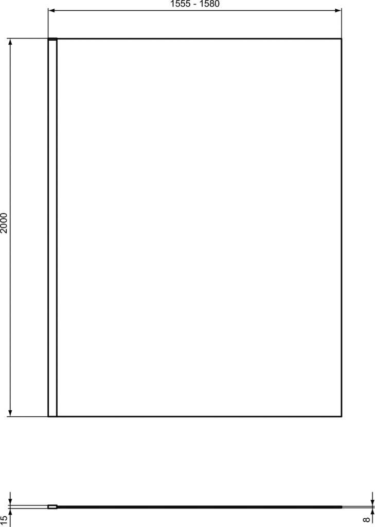 i.LIFE Wetroom sprchový kút, pevná stena 80 cm. Výška 200 cm. Prevedenie výplne - bezpečnostné transparentné sklo 8 mm s upravou IdealClean (zamedzuje usadzovaniu vodného kameňa a uľachčuje čistenie). Hliníkový profil Silver Bright (Lesklý chom). Montážna nastaviteľnosť 25 mm od 1555mm - 1580mm. Vhodné pre inštaláciu so sprchovou vaničkou alebo priamo na podlahu. Všetky steny Wetroom sú dodávanie do steny s hlinikovým tesniacím pásikom pre inštalaciú k podlahe alebo k sprchovej vaničke. Steny Wetroom sú reversebilné ( je možné ich inštalovať ako Pravé i Ľavé).