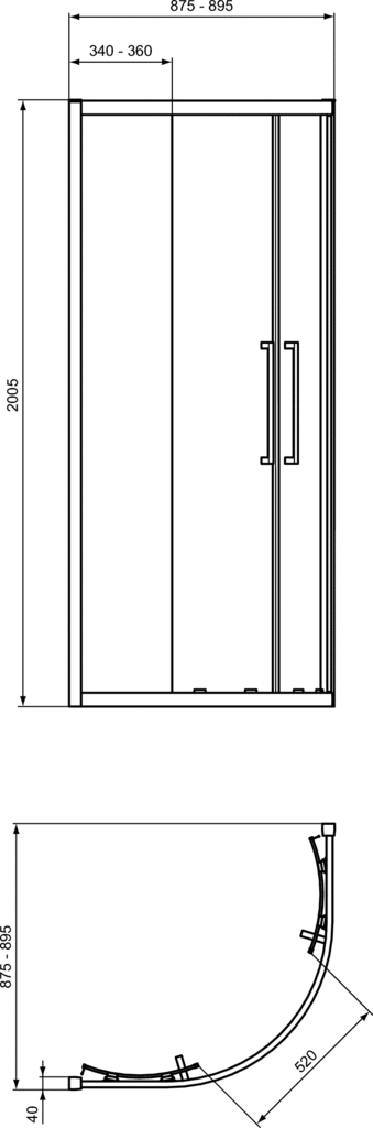 i.Life štvrťkruhový sprchovací kút s 2 posuvnými dverami. Rádius 550 mm. Výška 200 cm. Prevedenie výplne bezpečnostné sklo 8 mm číre transparentné. Sklo s úpravou Ideal Clean (zamedzuje usadzovaniu vodného kameňa a uľahčuje čistenie). Hliníkové profily Silver Bright (lesklý chróm). Masívna chrómová rukoväť 350 mm. Hladké pojazdové kolieska. Systém Clik&Clean (uvoľnenie spodnej častí dverí pre uľahčenie čistenia). Montážna nastaviteľnosť 20 mm na profil = 50 mm od 875mm - 895 mm. Možnosť kombinovať so všetkými sprchovými vaničkami, alebo inštalovať priamo na dlažbu. Dvere sú reversebilné - je možné ich inštalovať ako pravé i ľavé. UPOZORNENIE: objednávacie číslo zahrňuje obe strany/obe dvere kúta (kompletné balenie).