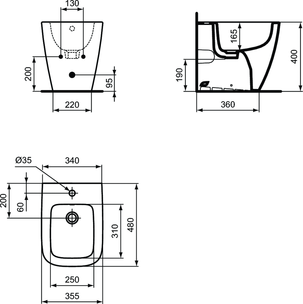 I.LIFE S Stacionárny bidet 36x48 cm, T459501