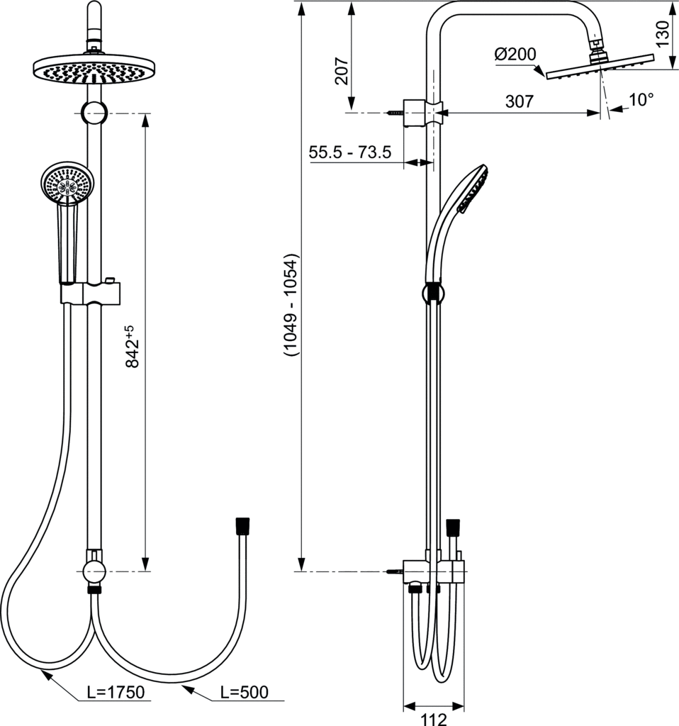 Idealrain sprchový systém pre kombináciu s nástennou batériou, alebo s dielom pre pripojenie sprchy. Kovová hlavová sprcha Ø200 mm a 3-funkčná ručná sprcha Ø100 mm (dášť / tropický dášť / masážný prúd). Funkcia Anti-Kalk - systém proti tvorbe vodného kameňa. Sprchová tyč s posuvným držiakom sprchy. Hadice "Idealflex" 1750 mm. Skryté pripojenie G1/2. Integrovaný prepínač.