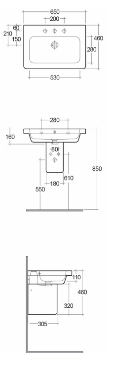 Rak Resort umývadlo 65x46 cm. z keramického črepu . S otvorom pre umývadlovú batériu a s prepadovzm otvorom.