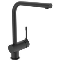 Ceralook kuchynská batéria s vysokým vývodom a otočným vývodom, DN15. . Prevedenie povrchu hodvábna čierná matná. Vývod 225 mm. Výška vývodu 322 mm. Rozsah otáčanie vývodu 360°. Telo batérie Ø40mm s rozetou Ø50 mm. Clik Kartuše Ø38 mm s keramickými diskami a obmedzovačom teplej vody. Pivot kartuše z nerez ocele. Kovová ovládacia páka "BlueStart" = páka v stredovej pozicií = studená voda. Rozsah otáčanie páky 100°. Montáž zo spodu - upevnenie EasyFix s centrovaním a tesniacím krúžkom. S flexibilnými hadicami G3/8. Životnosť testovaná podľa EN 817. Ochrana proti hluku DIN 4109, trieda 1.