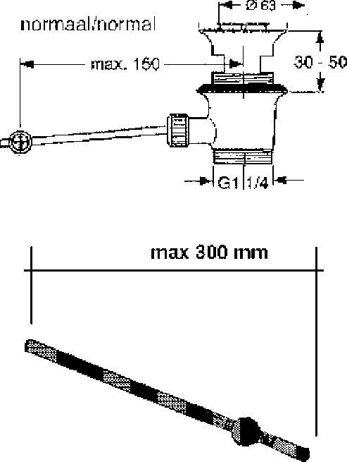 Predlžené tiahlo odpadovej garnitúry max. dĺžka 30 cm.