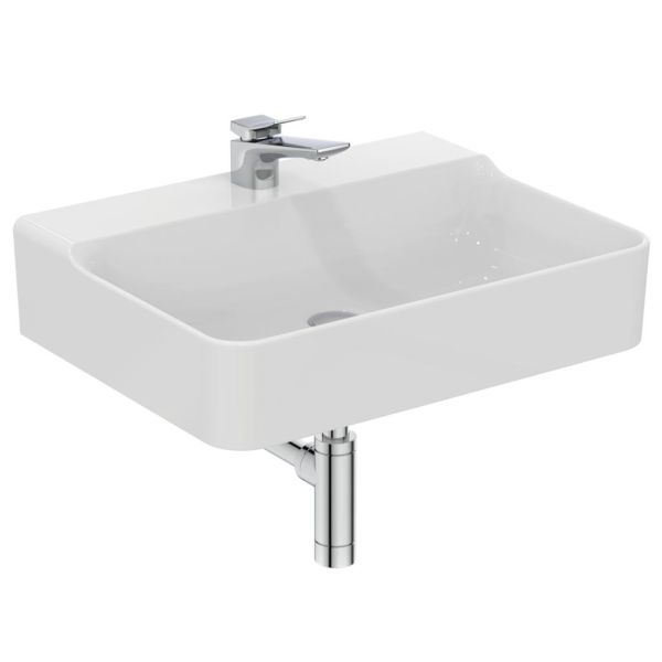 Umývadlo nástenné 60 x 45 cm farba biela lesklá. S otvorom pre umývadlovú batériu. Bez prepadového otvoru. Glazovaná spodná hrana - nie je vhodné pre inštaláciu na dosku. V prípade inštalácie s umývadlovou batériou s odtokovou garnitúrou je potrebné objednať predlžené tiahlo garnitúry.