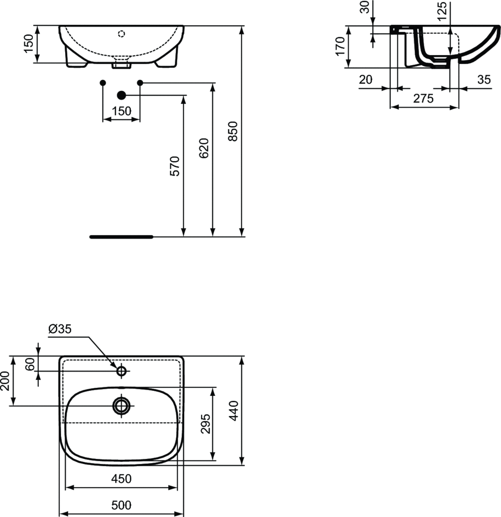 I.LIFE Polozápustné umývadlo 50x44 cm, T451701