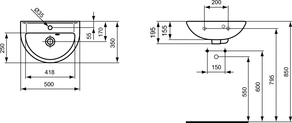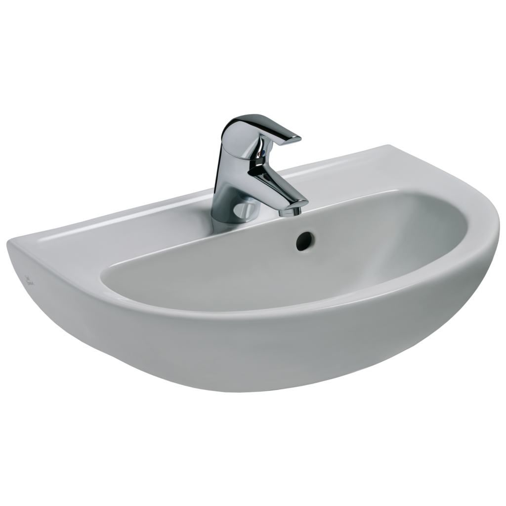 Eurovit umývadielko 50 cm z keramiky. Prepadový otvor vpravo. V strede s 1 otvorom pre batériu. Upevnenie - 2 skrutky M10 x 140 mm (K710767), nie je súčasťou dodávky.