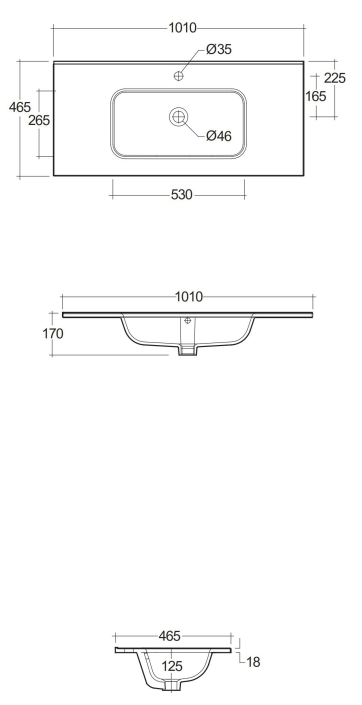 Rak Joy Umývadlo 101x46,5 cm z keramického črepu s 1 otvorom pre batériu. S prepadovým otvorom. Spodná hrana neglazovaná.