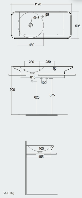 Rak Valet umývadlo 112x50,5 cm. S otvorom pre batériu a odkladacou plochou vpravo bez prepadového otvoru. Z keramického črepu prevedenie bielá matná. Umývadlo samonostné montáž na stenu, možnosť inštalácie na dosku, zadná stena neglazovaná.