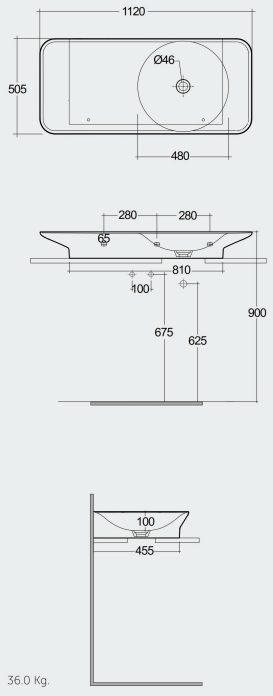 Rak Valet umývadlo 112x50,5 cm. Bez otvoru pre batériu a odkladacou plochou vľavo bez prepadového otvoru. Z keramického črepu prevedenie bielá lesklá. Umývadlo samonostné montáž na stenu, možnosť inštalácie na dosku, zadná stena neglazovaná.